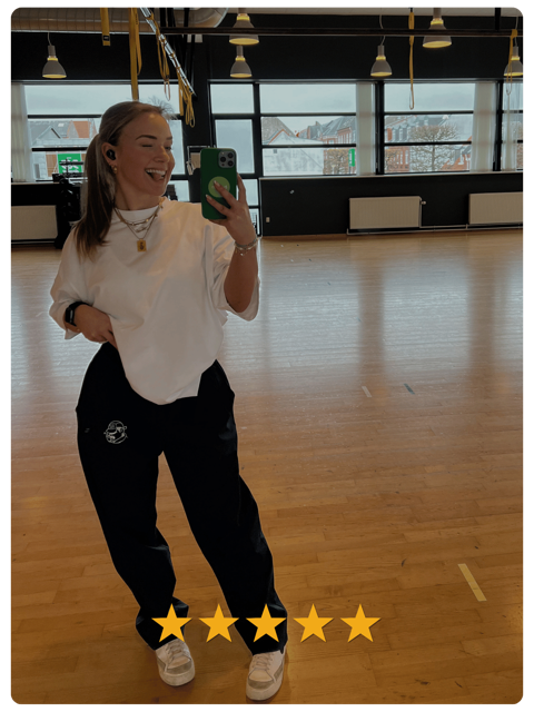"Jeg kører altid ekstra oversize på mit tøj, så selvom jeg nok mest ville passe en S, så har jeg det hele i M. Det er klart det bedste oversized fit, jeg har prøvet i træningstøj."