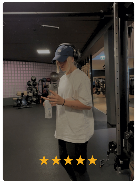 "Jeg bruger størrelse M, og den sidder superfint. Jeg har 5 t-shirts, og jeg træner ikke i andet."