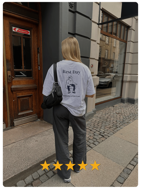 "XL-tee, bruger den til alt - lige fra på arbejdet til træningen, eller bare sofaen. Det er fuldstændig ligegyldigt, når en tee kan føles som et “hjem” at have på!"